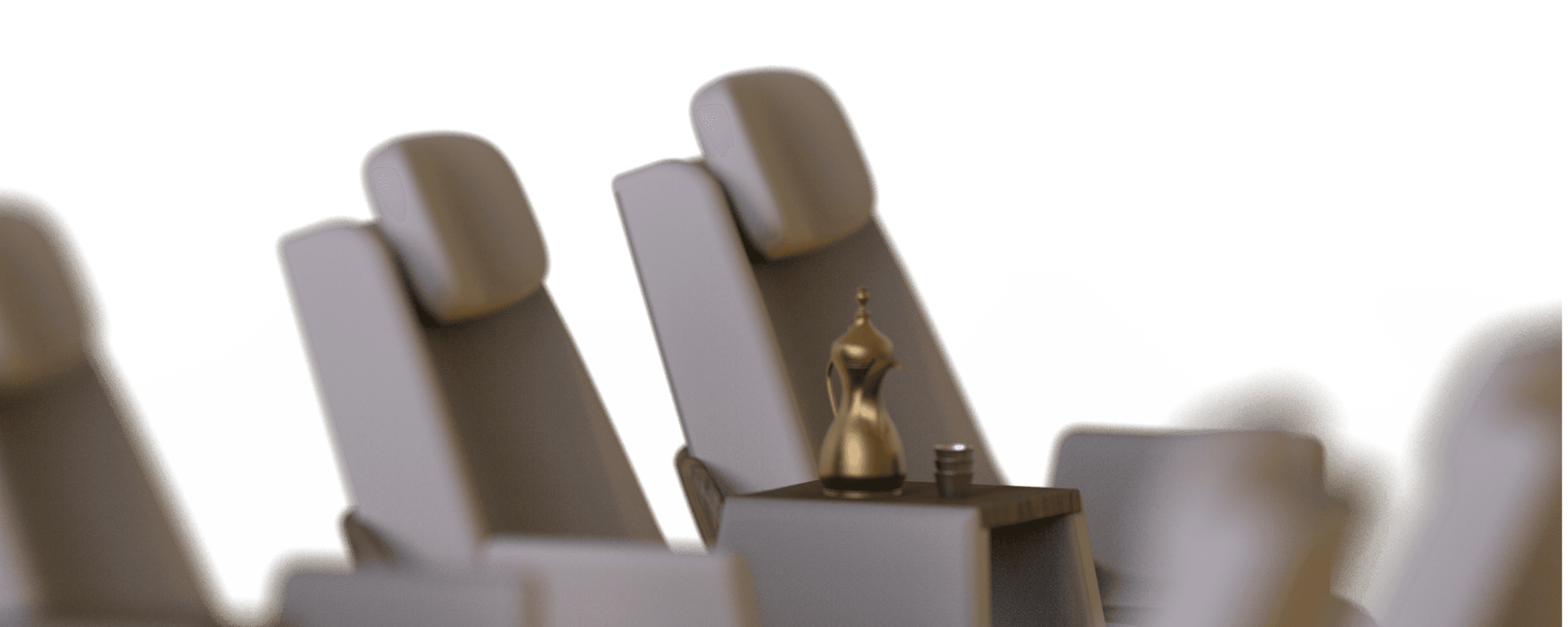 The concept draws inspiration from the traditional sitting style in the Kingdom, known as the floor seating. Additionally, it reflects the Saudi hospitality by providing a shared table between visitors, encouraging interaction. Lastly, the external design incorporates traditional patterns and decorations in harmony with their interconnections.